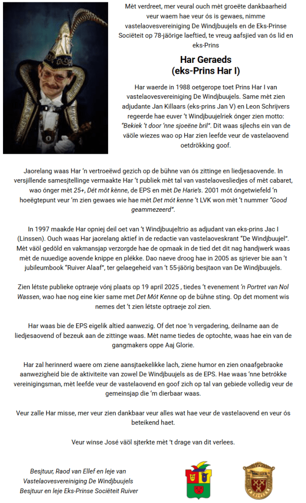 Vastelaovesvereiniging "De Windjbuujels" Ruiver